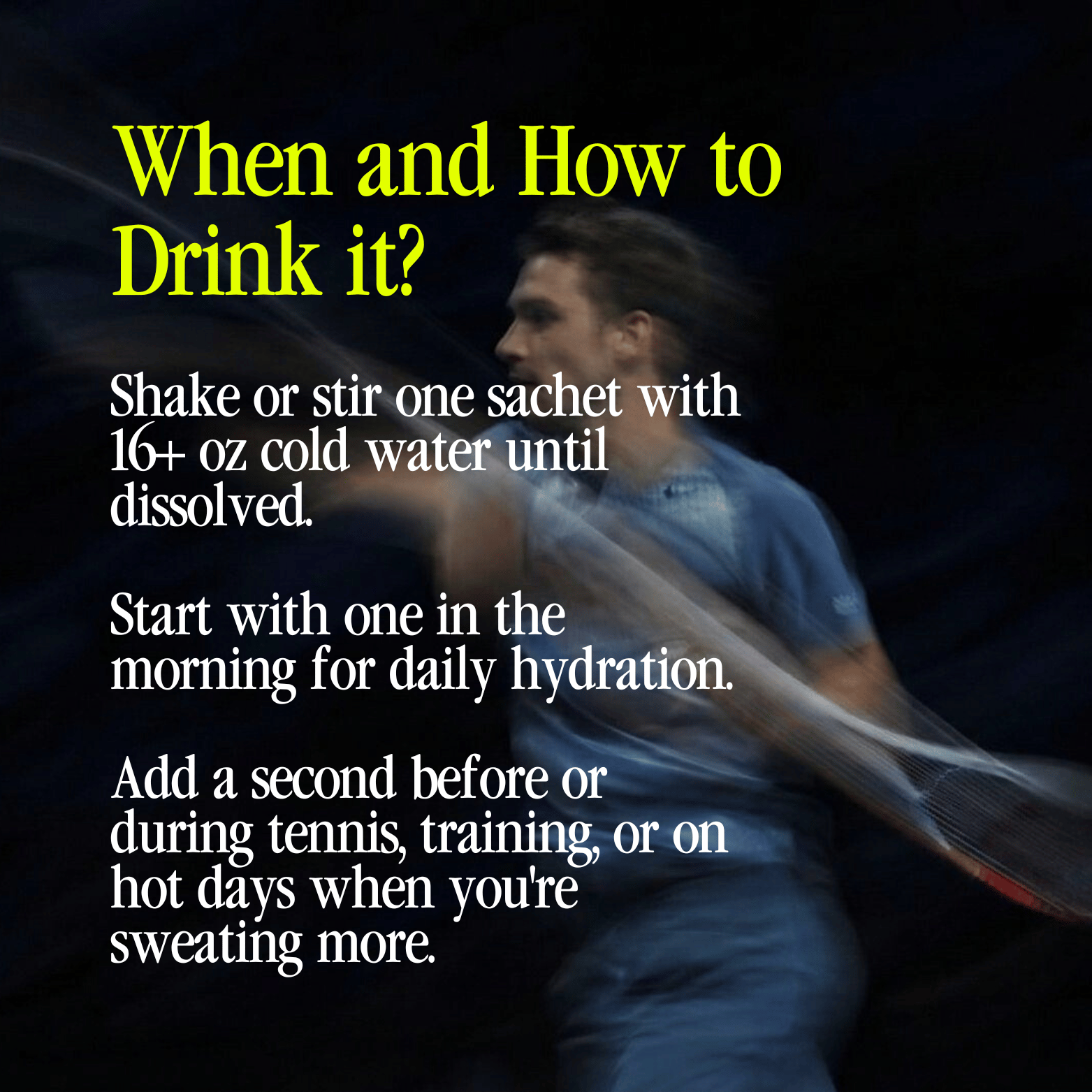 Start with one in the morning for daily hydration. Add a second before or during tennis, training, or on hot days when you're sweating more.