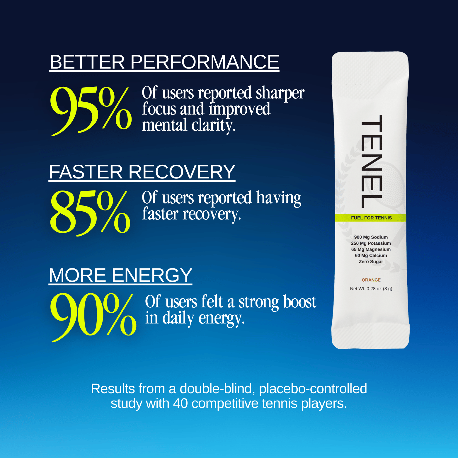 Peak performance on court. Sustained energy off it. TENEL delivers stable energy, rapid recovery, and mental clarity—not just on match day, but every single day.